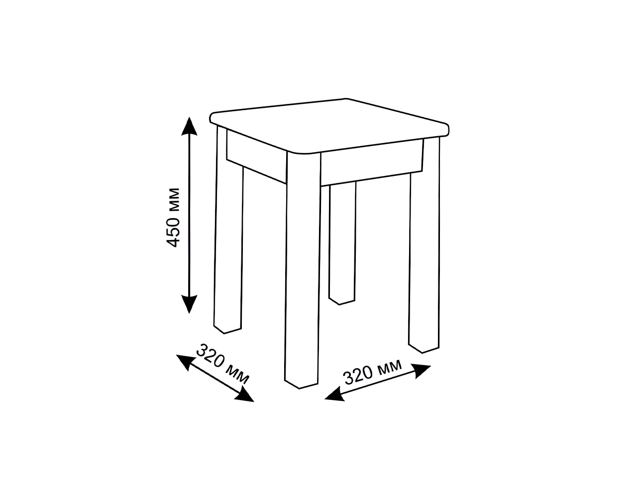 | Матеріал: | Ніжки: дерево сосна. Сидіння: ЛДСП 16 мм. Крайка: ПВХ 2 мм |