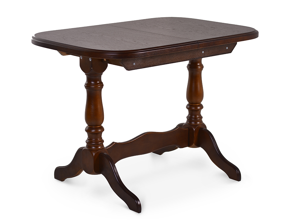 Дизайн столу виконаний в класичному стилі. Стільниця зроблена із МДФ, обклеєна дубовим шпоном, а каркас – з масиву сосни.